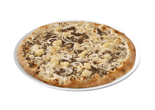 Crème fraiche, fromage, oignons, viande hachée, pomme de terre