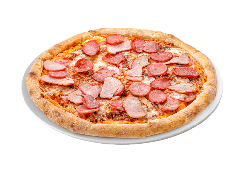 Tomate, fromage, jambon, lardons, pepperoni, bacon