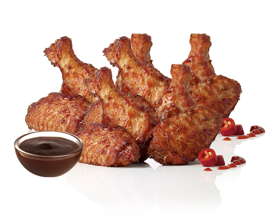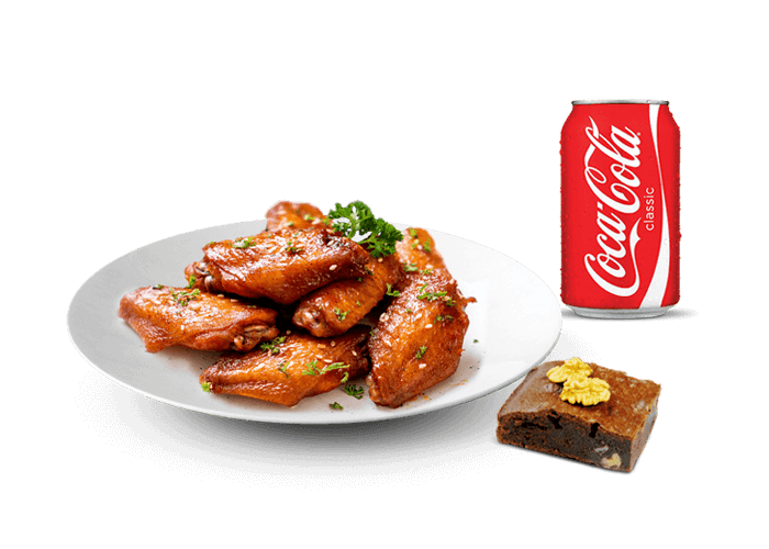 2 chicken wings + Mozzarella Sticks + 2 Nuggets + 2 Calamars Fritti , Potatoes, Sauce barbecue.